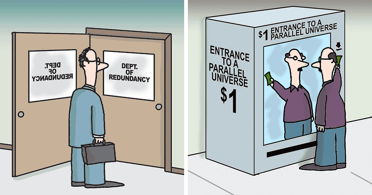 When asked how his style has evolved over time, Dave explained: “I used to tell my daughters, ‘You can’t help but get better at something if you do it every day.’ That certainly applied to me. Over time, my drawing just became more confident. Just as important, as my drawing got better, I was able to convey a joke with the drawing and not just with the words and the cleverness of the gag. Now it’s weirdly a question of trying not to do too much… even though I now can. I’ve pulled back on the art so that it still has a weird, rougher, odder look that works best with my jokes. And I’ve even pulled back on complex backgrounds so the cartoons work both online and on the printed page.”
