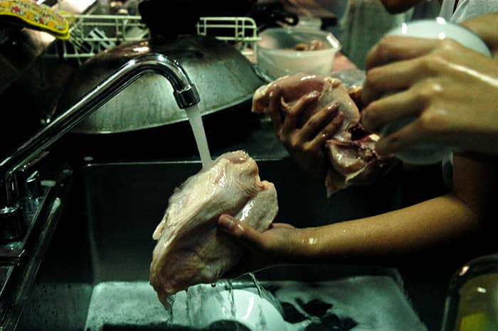 I saw a video on Reddit or Pinterest of a woman washing her chicken in a sink with Bleach and a couple drops of Dawn dish soap. She said her Mother and Grandmother both cleaned their chicken this way.