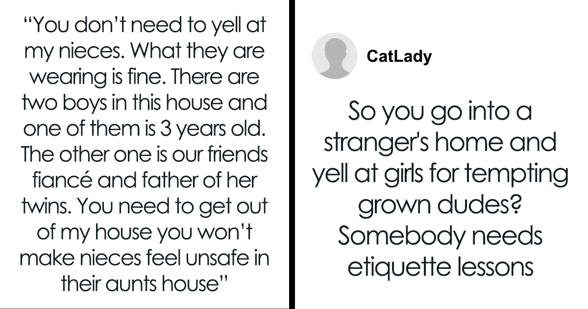 While the guests were over, the OP’s oldest three nieces had just come back from their cheerleading practice and so they were wearing their uniforms. Everyone was having a great time, but suddenly, the woman who the friends had brought yelled at the oldest niece that she should change her clothes. And by that, she meant that the girls should cover up because there were men in the house, so girls shouldn’t tempt them. The men she was referring to were two boys and the father of the friend’s twins.