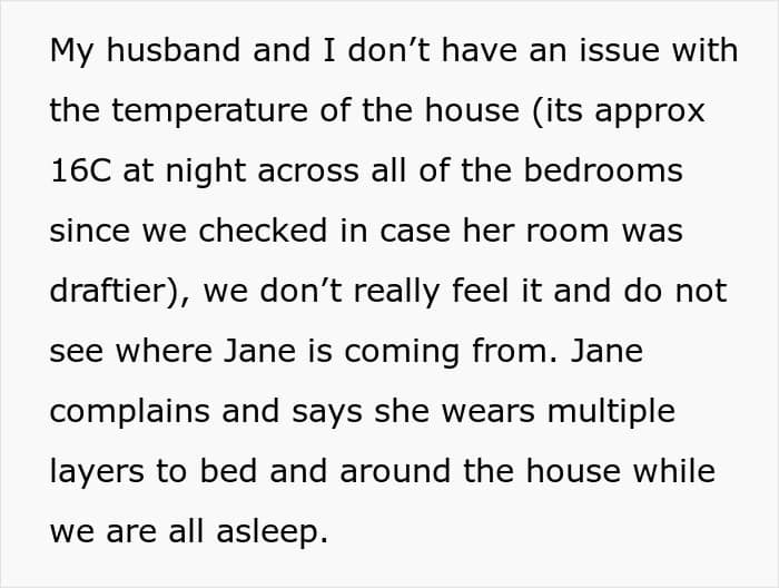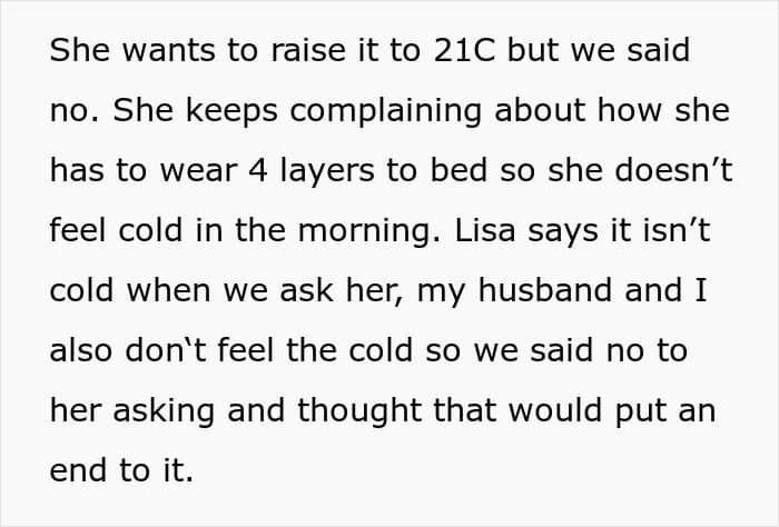 This woman suggested that her daughter put on more layers if she’s cold and refused to give her access to the thermostat