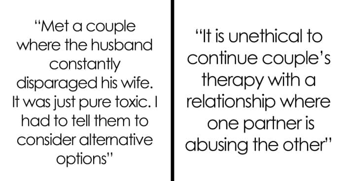 Though these professionals help many of their clients, some of them seem nearly beyond their aid. We has collected some of the most open and honest therapists’ posts on Reddit about how they handle cases when couples have deeply troubled relationships that they might feel won’t last. Scroll down for their stories.