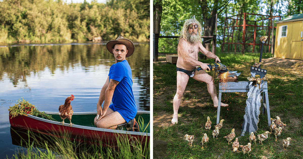 Looking at the pictures, we couldn’t help but wonder how Brock came up with these amazing photoshoot ideas. Every image is funny and unique, so we wanted to know more about how she creates them. The photographer revealed that typically, she comes up with a list of ideas that she wants featured in the calendar in advance. “But I tend to like the calendar edition and scene the models are in to represent them in some way, if possible – for example, we have a professional artist painting a portrait of his favorite chicken, a swordmaker making a sword, and comedian Matt Mathews wearing one of his famous ‘farm chore’ robes.