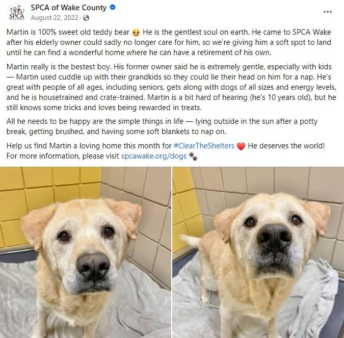 It’s so amazing to see senior dogs also getting a chance at adoption. Regardless of the age, a dog will always love you and be there for you, so never overlook that factor when you are considering adopting one.