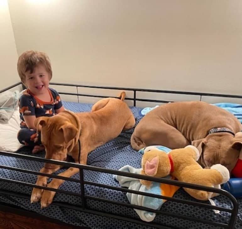 He has three hooman siblings and a doggo sister, and he just couldn’t be happier! According to his new family, Fig is very attentive to all of their whereabouts. And, he’s always at the door to greet the kids when they get home from school!