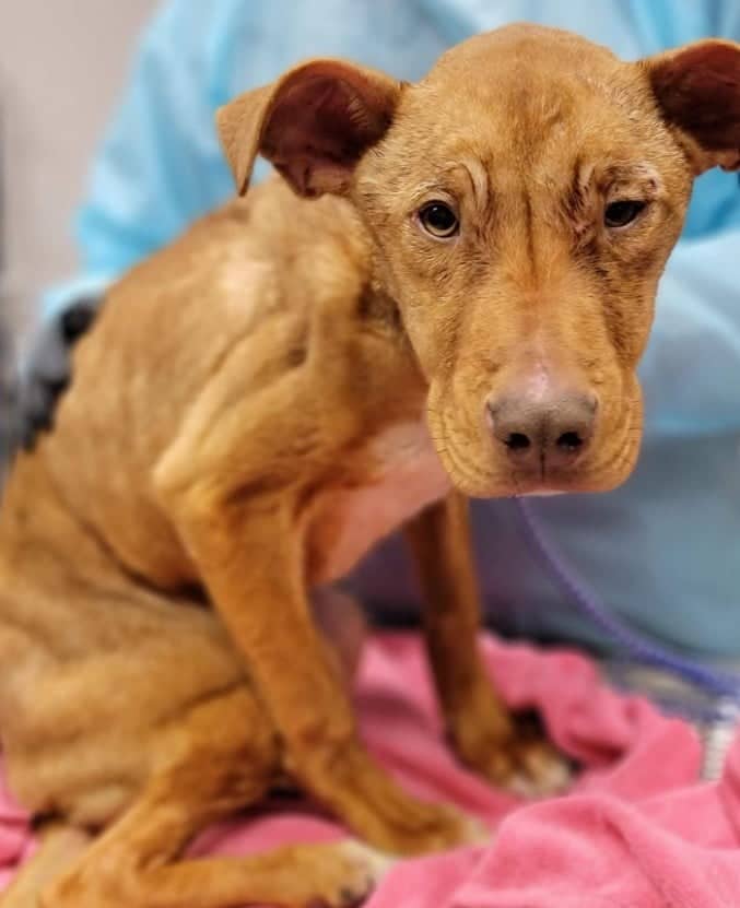 Fig was extremely emaciated when he was first spotted on the streets of Paterson, New Jersey. He was only 25 pounds, ate whatever was in his reach, and he could barely walk.