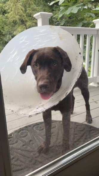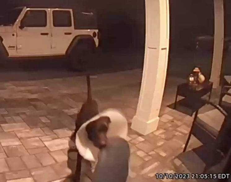 When trying to figure out who was bringing these objects, the family excluded their dog, Bear, as he was recently fixed to a dog cone.