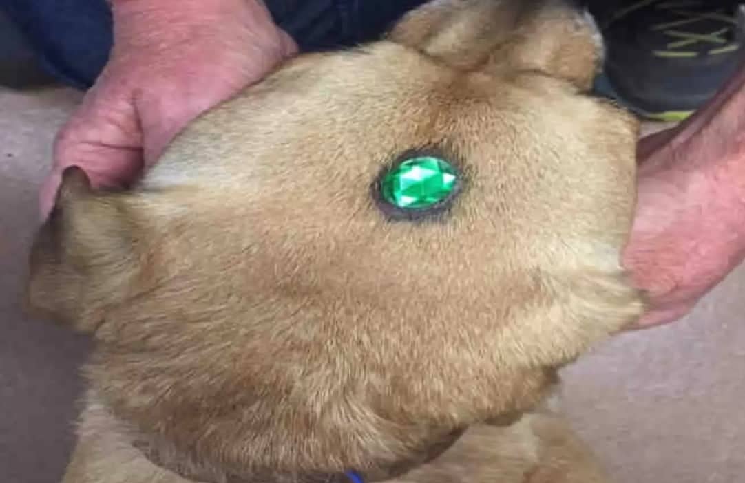 When the shelter staff approached the pups, they were both shocked and confused when they realized that the dogs had jewelry glued to their foreheads. Although many of the shelter members had worked in animal care for a long time, they had never seen something like that before.