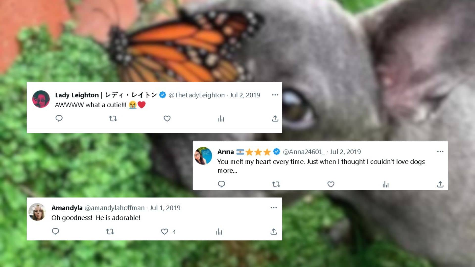 Our Bullie received a 13 out of 10 dog rating for his gentleness with the monarch butterfly. We would still say that this dog and her butterfly deserve a higher rating, at least 14/10. And, many followers in the comments agree with us.