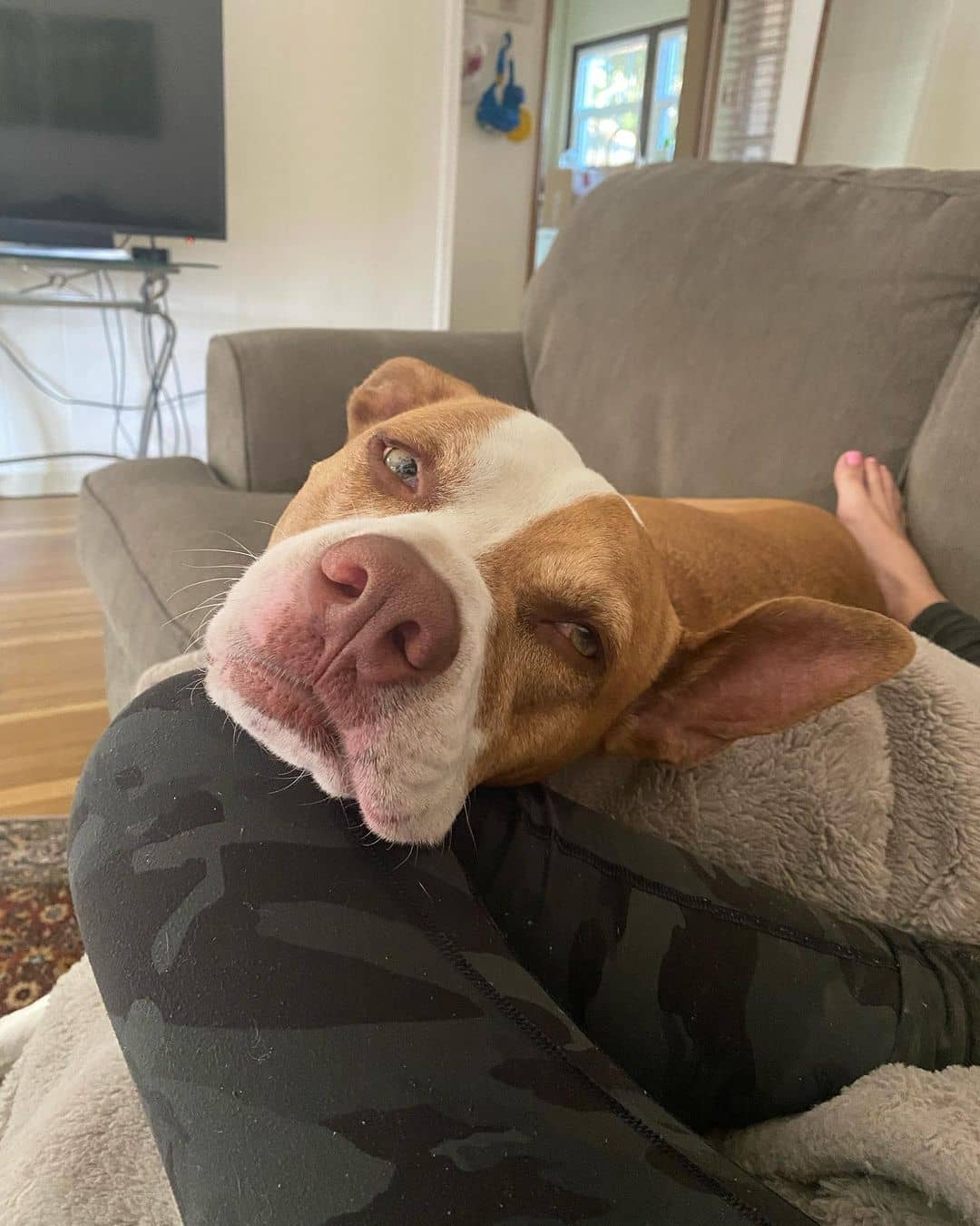 The couple took Buddy in and in no time – he was already acting like a long-time family member! This crooked-eared Pittie felt very comfortable around his new pawrents, and he loved spending time with them right off the bat!