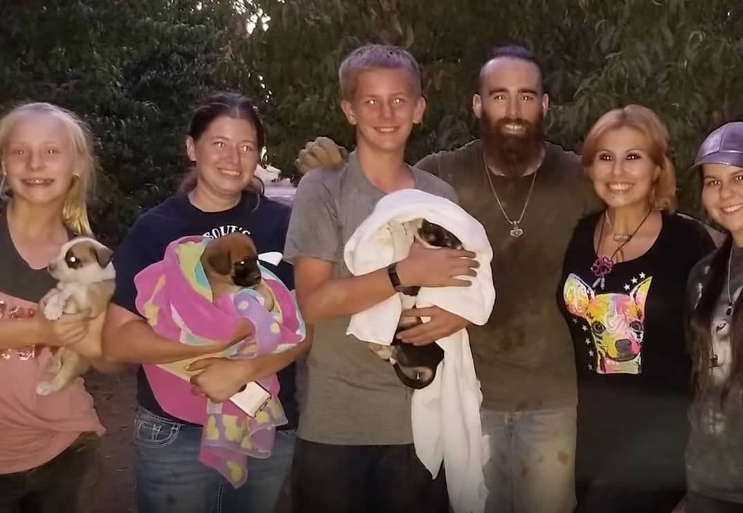 Krystle Woodward, of Pinky Paws Search & ResQ, from Selma, California, noticed one of the pups peering from the hole on her walk. Once she realized that there was a whole doggo family hiding in there, she immediately rushed into action!