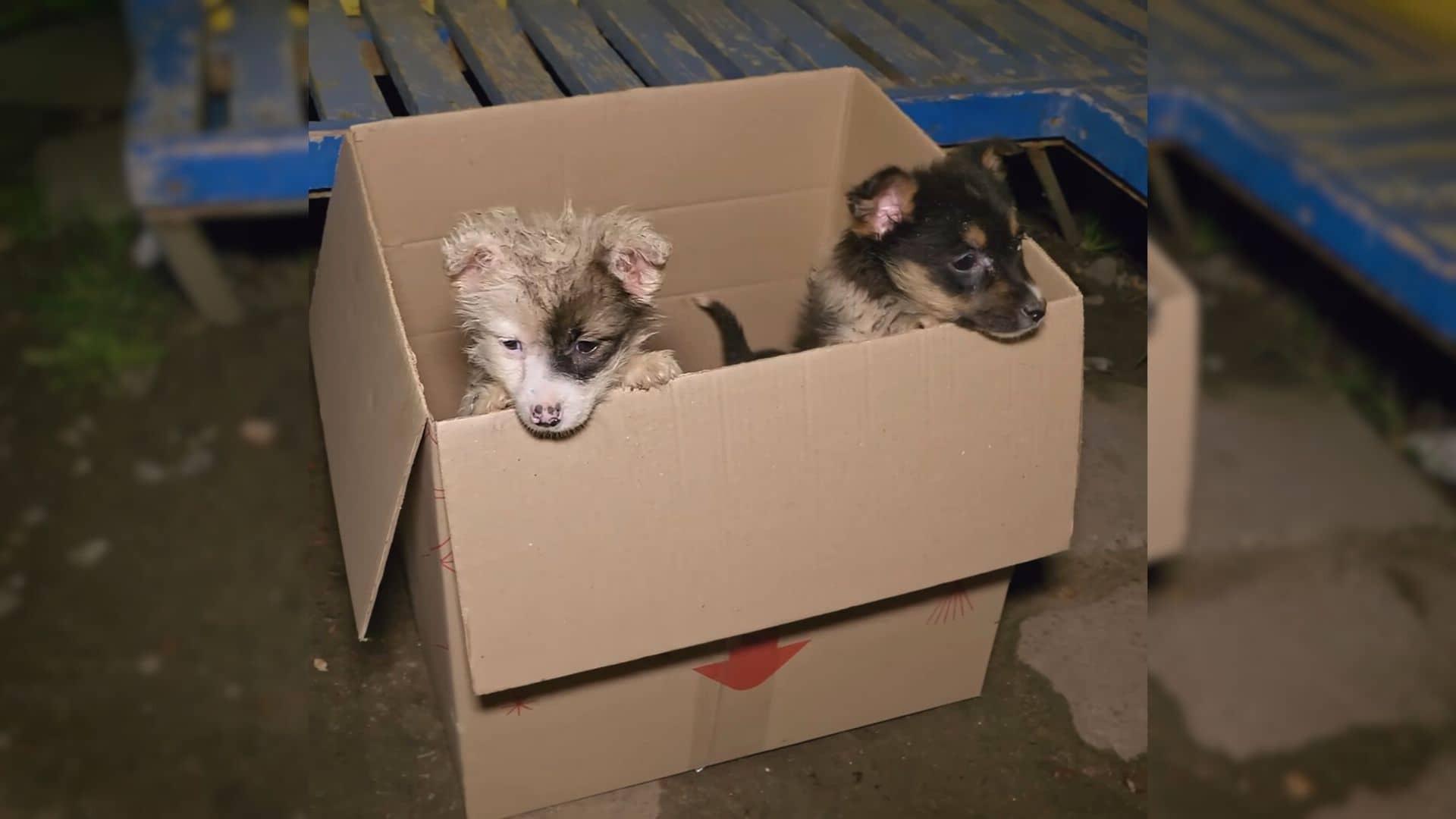 When a kind bus driver came to a stop, he noticed something strange inside a small box there. There were two small puppies just lying there, confused.