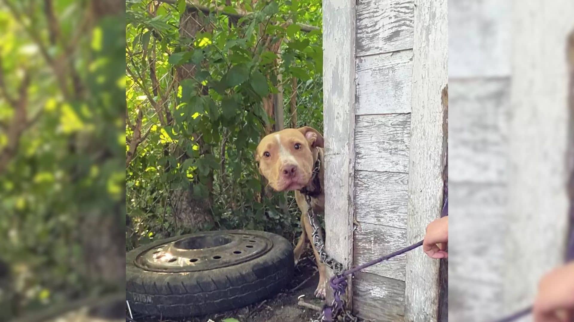 When he went to investigate, he was met with the most adorable dog who was, unfortunately, chained to the house.